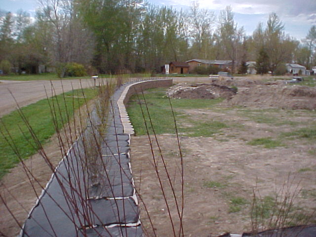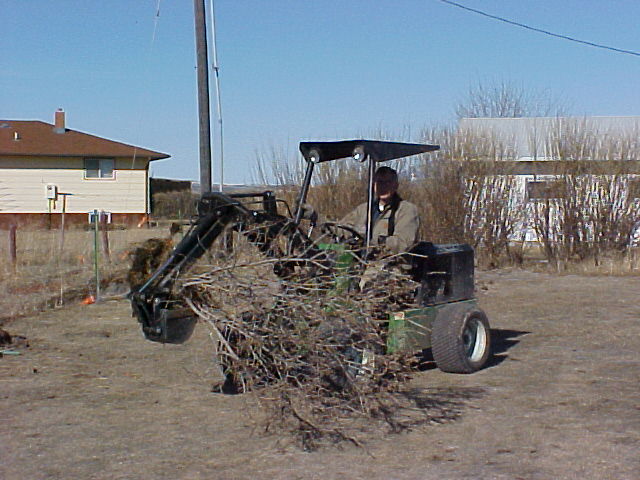 Cutting down side hill for new garage. Cut down to 10 feet below top of hill, which was about maximum reach for mini hoe. Used the bucket to rip downwards, which worked very well.