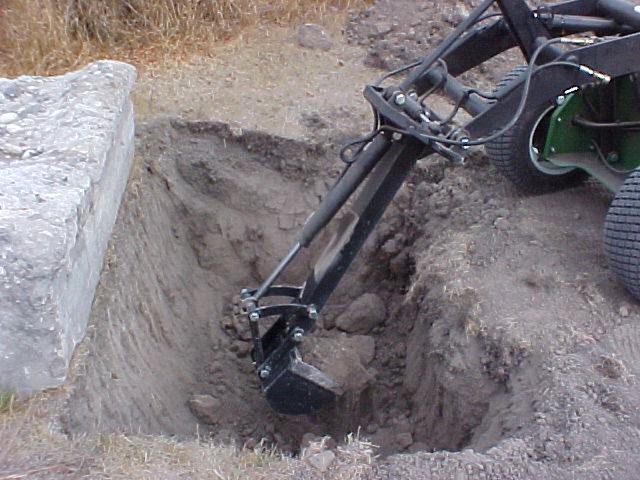 Digging very large and deep hole to bury large cement slab (same size as coffin). Slab was so heavy I had to push with forks into the hole.