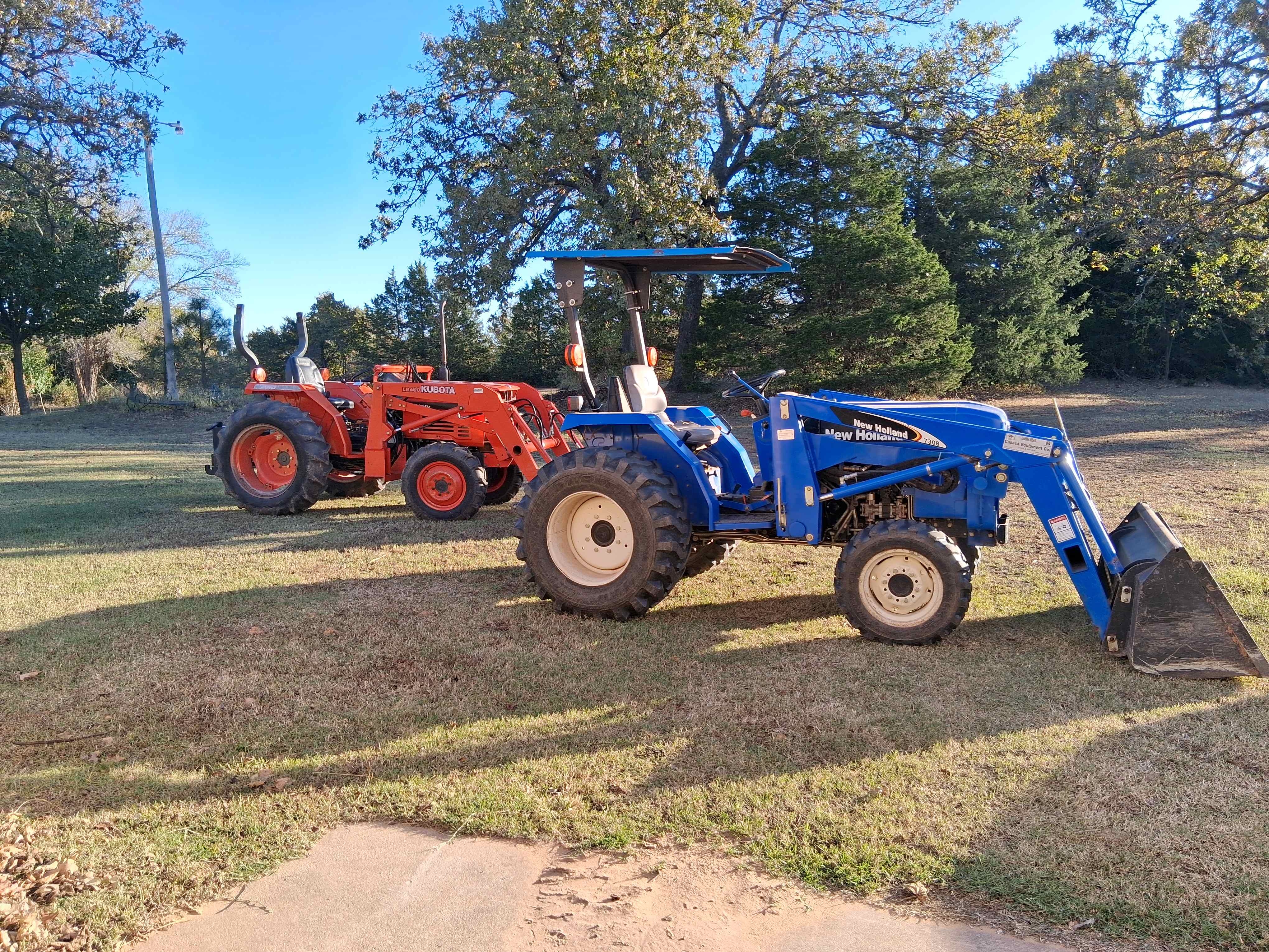 Just lay the chains out behind the tractor with the stud side facing UP, tie the end of the chain to the tire, drive forward, stopping occasionally to make sure the chains are centered properly on the tire. Drive until the end you tied on has come around the tire and is halfway up the back of the tire. Stop and make the connections, and you are done. With just a little bit of care, I don't have to do the extra step required by some other methods of driving around for a bit and then retightening the chains.