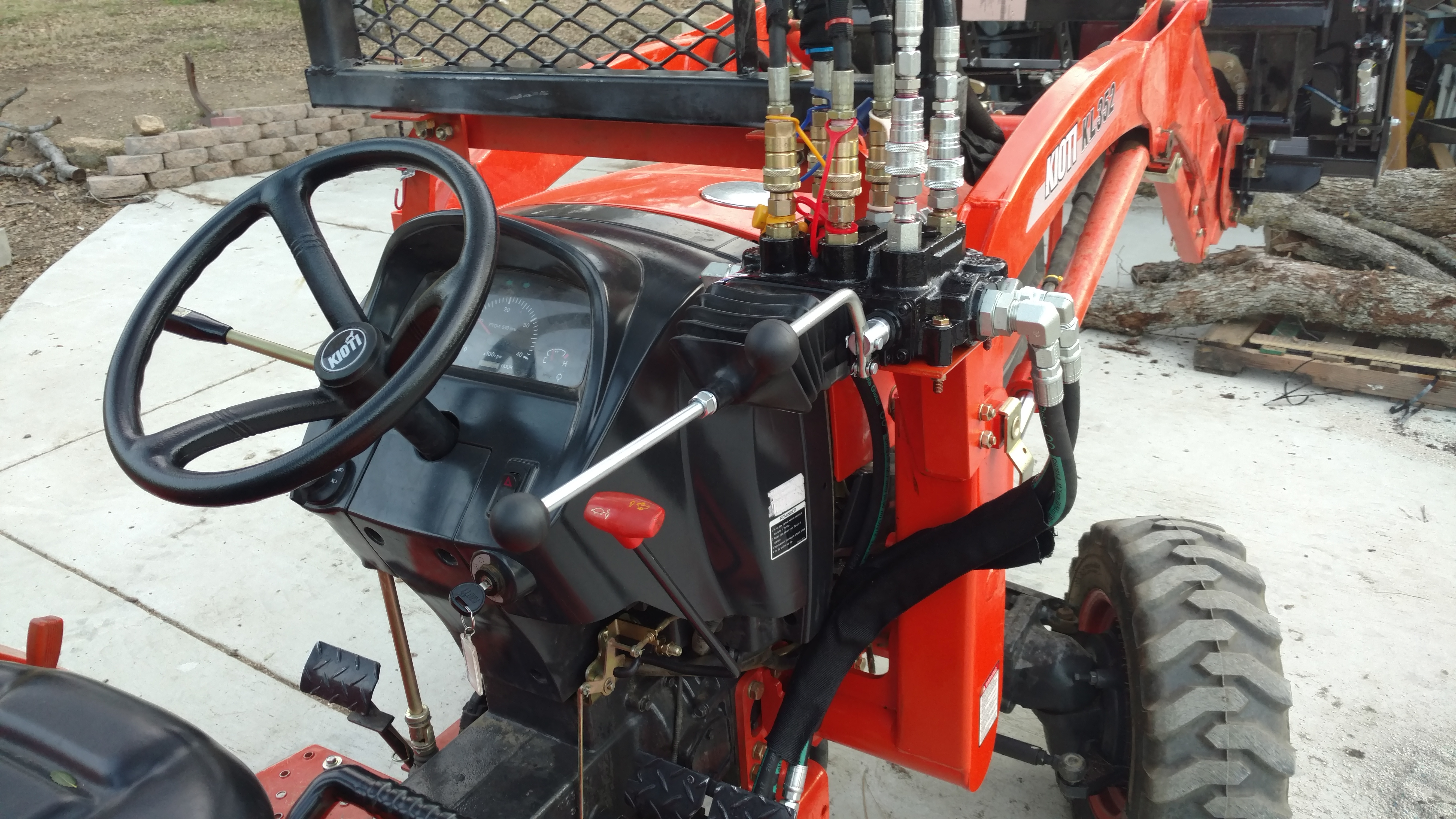 After I got SWMBO's gravel moved, I dropped the bucket and hooked up the grapple. This gave me the opportunity to test and correct all the connections for the third function. Travis at EA handled my order, and shipped the grapple with hoses but no connectors (at my request) which allowed me to purchase sets of quick connectors locally. Everything on the grapple was perfect, so I only had to fix my own errors.