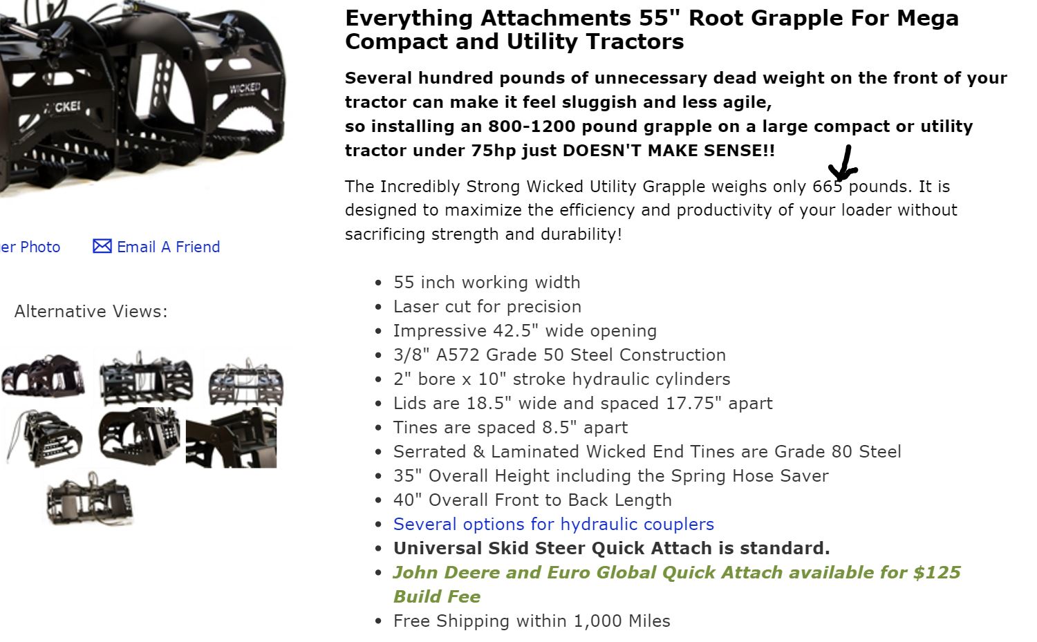 Here are some pics of the 55" Wicked Utility Grapple. The compact width makes it look MEAN!!! <img src="http://www.tractorbynet.com/forums/files/attachments/445604-wicked-utility-grapple-img_1679-jpg"/> <img src="http://www.tractorbynet.com/forums/files/attachments/445605-wicked-utility-grapple-img_1677-jpg"/> <img src="http://www.tractorbynet.com/forums/files/attachments/445606-wicked-utility-grapple-img_1676-jpg"/> AND............. <img src="http://www.tractorbynet.com/forums/files/attachments/445607-wicked-utility-grapple-wicked9-jpg"/>