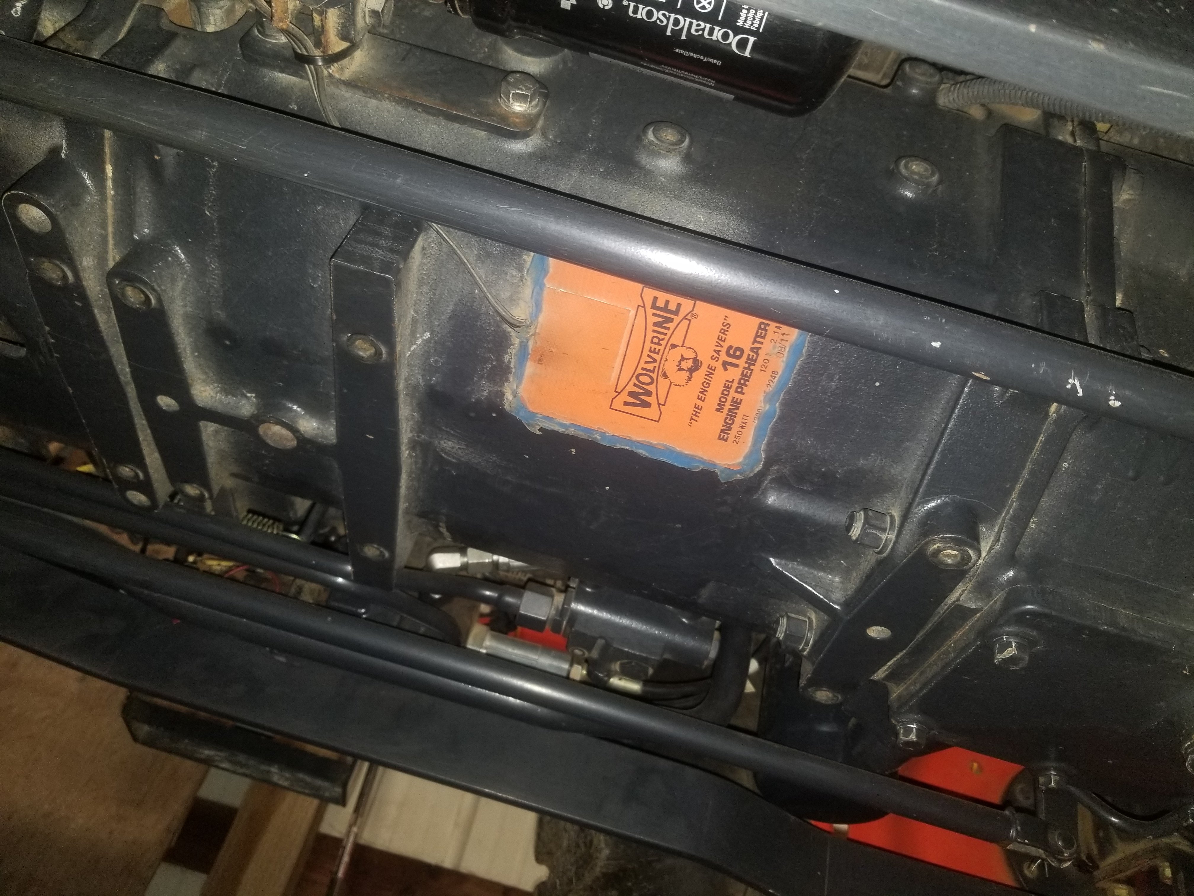 Ok, i took a few pics. I have one on oil pan, one on tranny to heat hydraulic oil and one on rear 3 point oil tank. If i dont use the hear strips, i can start the engine with glow plugs ( which i replaced this summer as 3 of the 4 had failed), but i would have to let it adle quite awhile to heat up the hydraulic fluid to where it wouldnt groan when moving tractor. With the heat, no groaning.