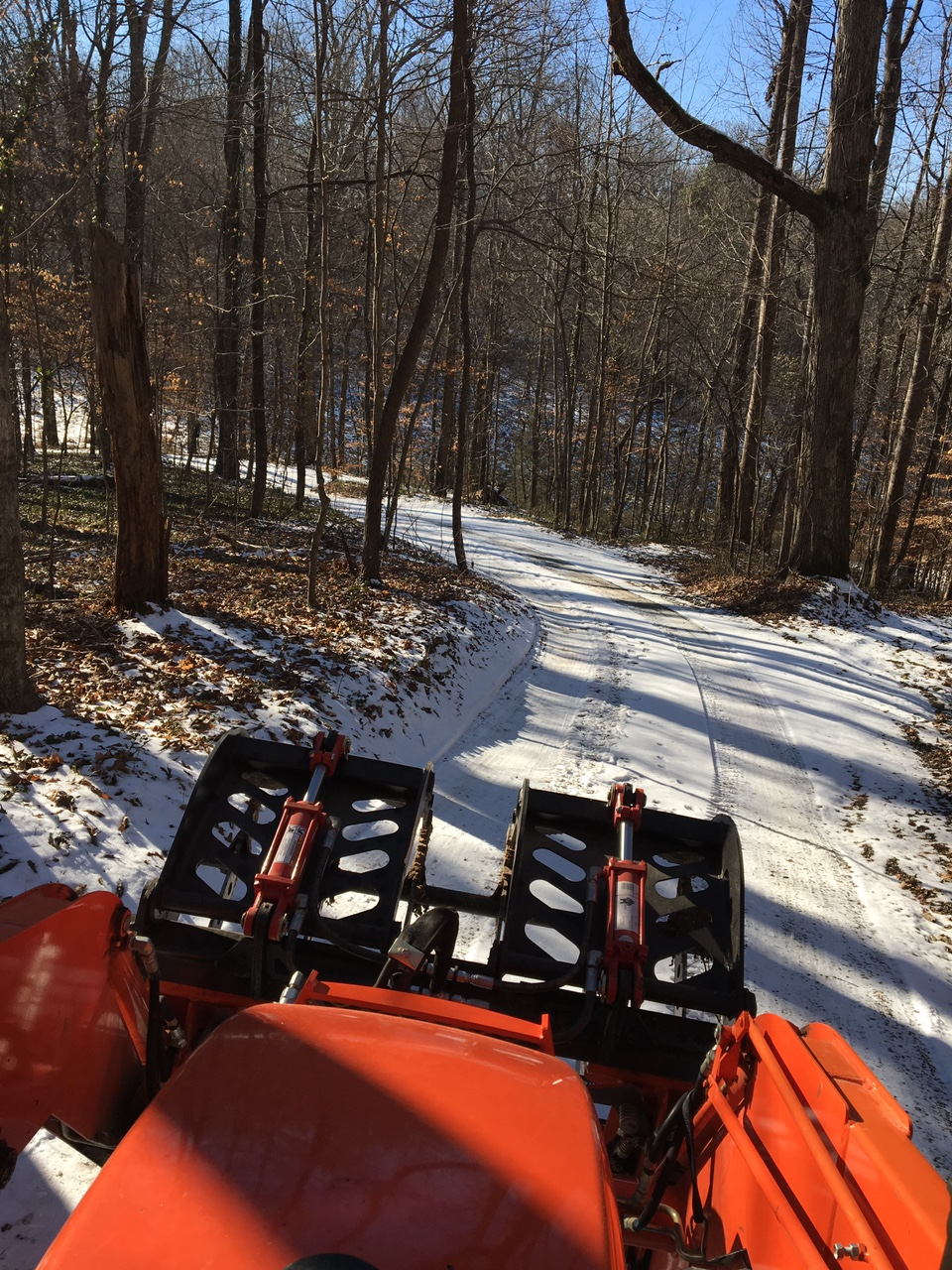 Snow hit...about 10", if memory serves. All I had at the time was the bucket and my chains (for the rear tires of the 4400) were still packed away...definitely not prepared!