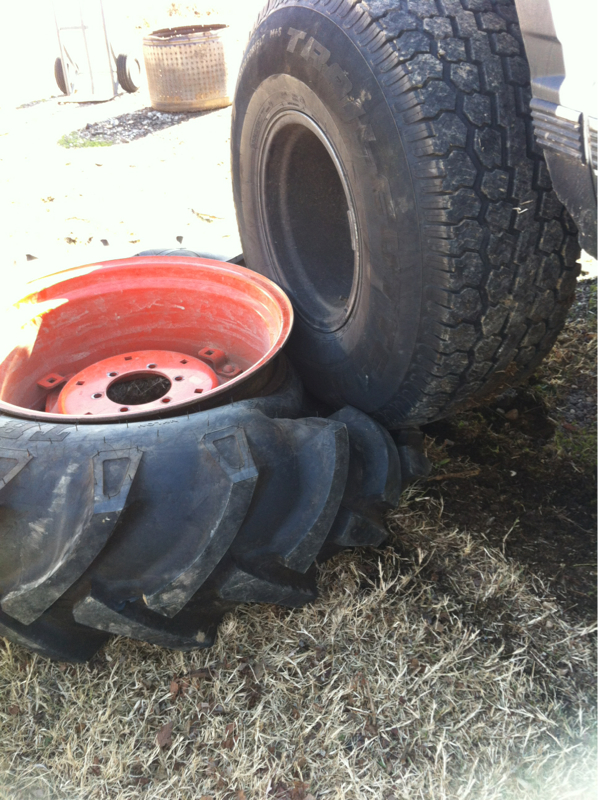 If you have ever took off a tractor tire, you would know what the bolts are there for. You just hang the rim on one of the studs and roll it till the other bolt slips in then tighten the nuts. Then all the stud holes are aligned and easily start. Imagine trying to manhandle a loaded tire just perfectly to align the holes and then trying to get a stud bolt started.