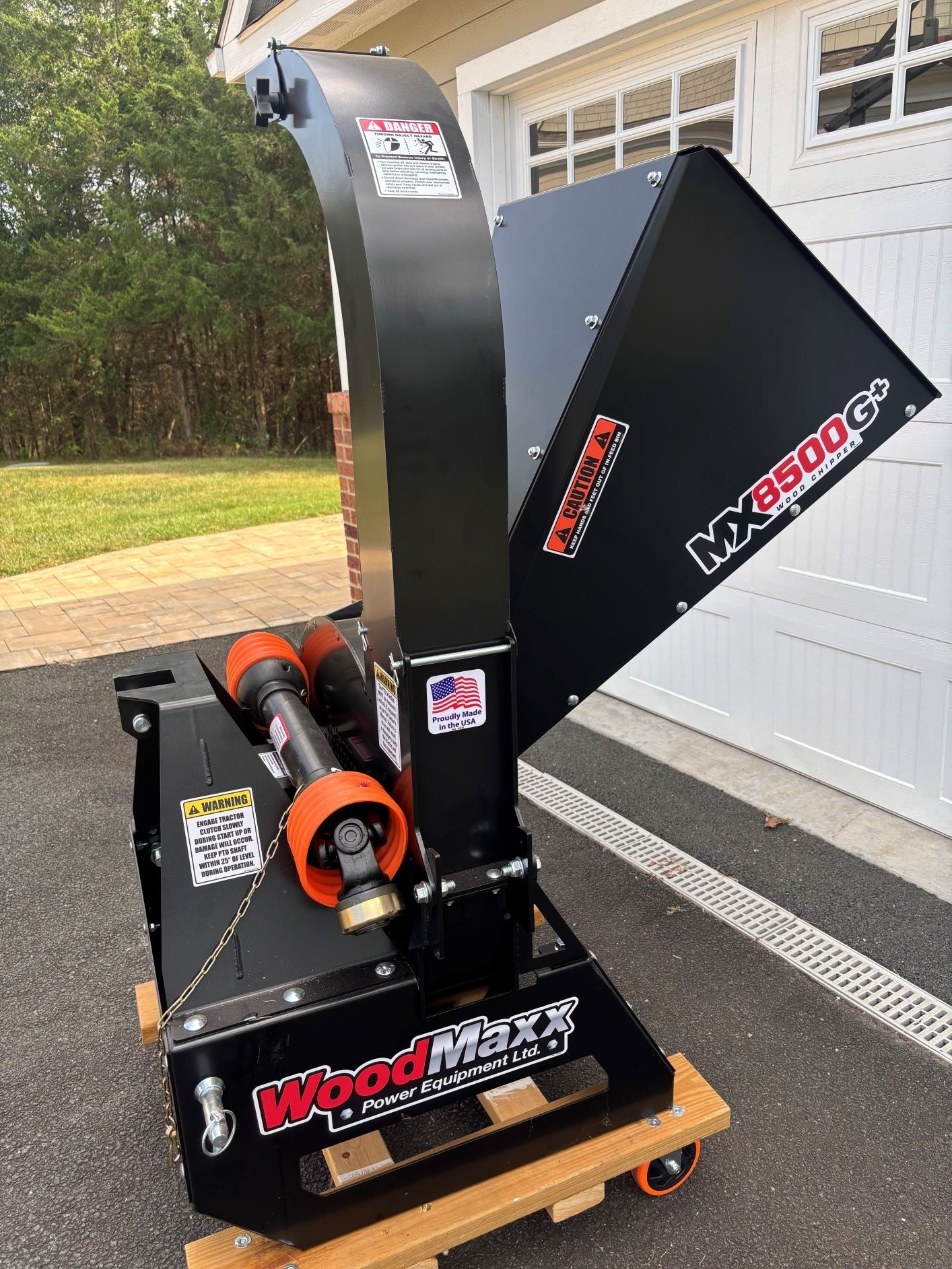 Brand new WoodMaxx MX-8500G+ 3 point hitch wood chipper. Made in USA. Assembled and garage kept its entire life. I bought this to help clear some land and that plan changed.