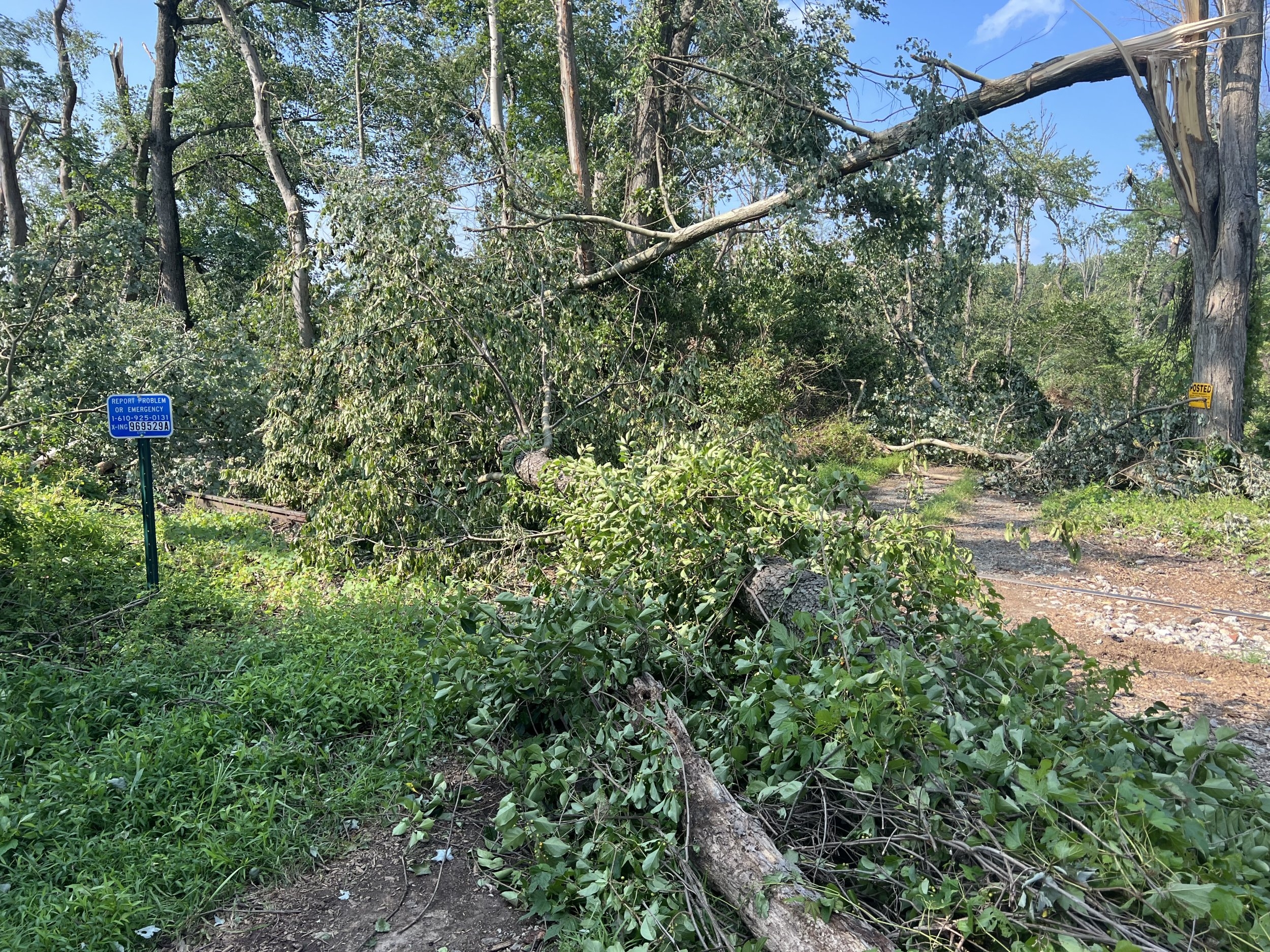 Uprooted trees and tore some off 50’ up the main tree trunk.