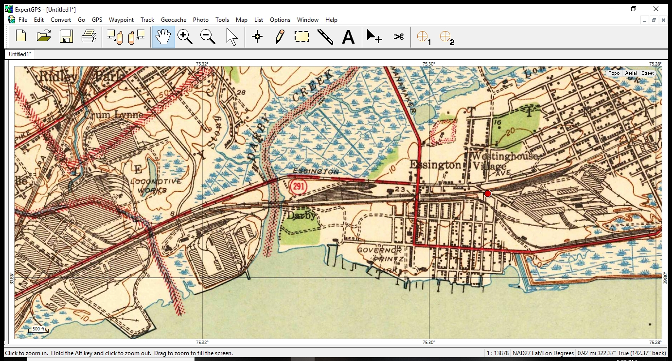 Here's about 1940 in the Philadelphia area. I tried to get the most RR stuff in one screen grab. The red dot was just a random waypoint to get me started.