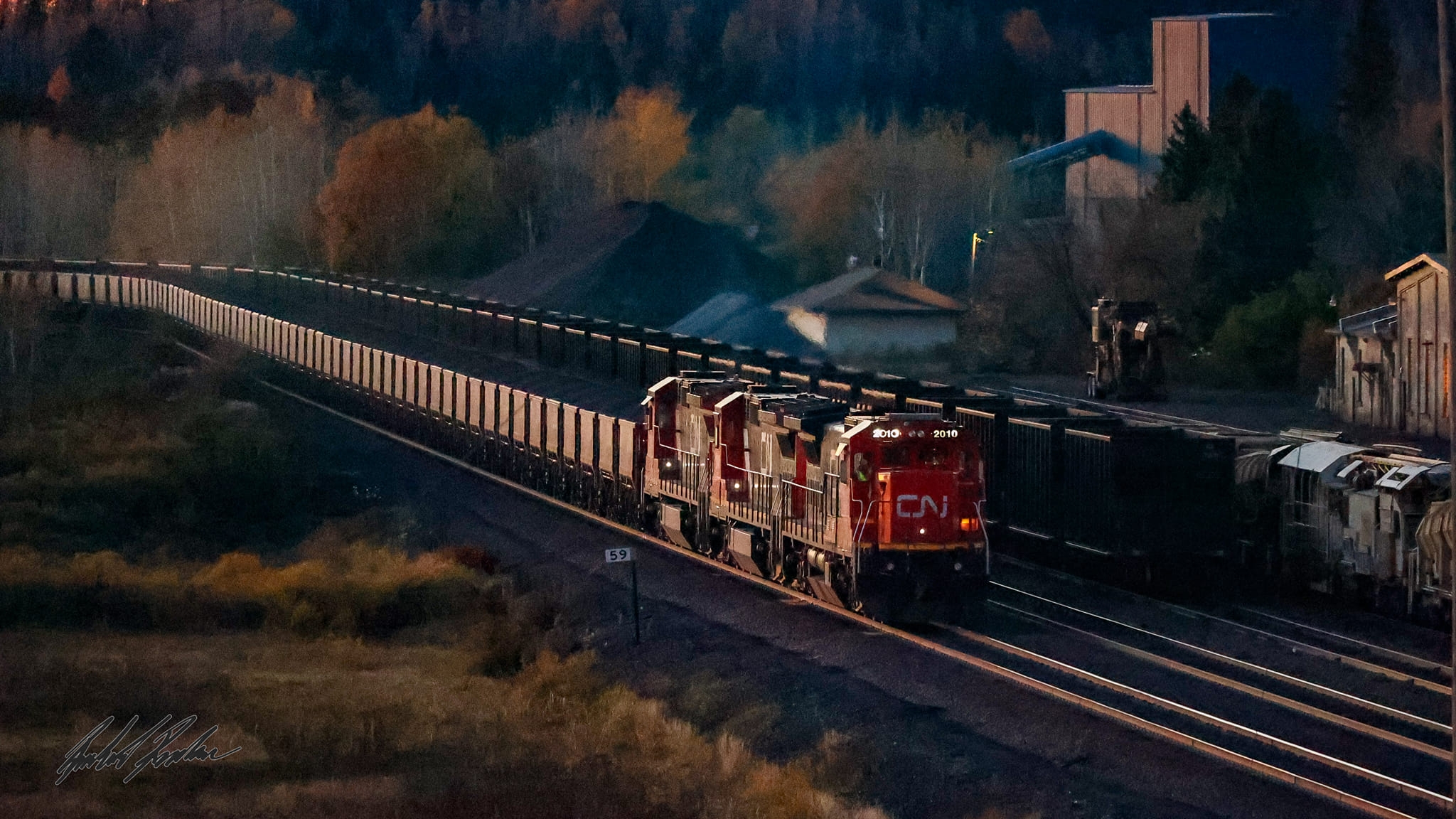 What is that, on the right edge on the far track?The sun sets on the few remaining GE C40-8 locomotives on the Iron Range, here a southbound trio of dash 8's led by CN 2010 stopped in Biwabik MN waiting for a northbound train. It got to dark to shoot the actual meet. 10/15/24. I must say, he took a super nice picture. View attachment 1576356
