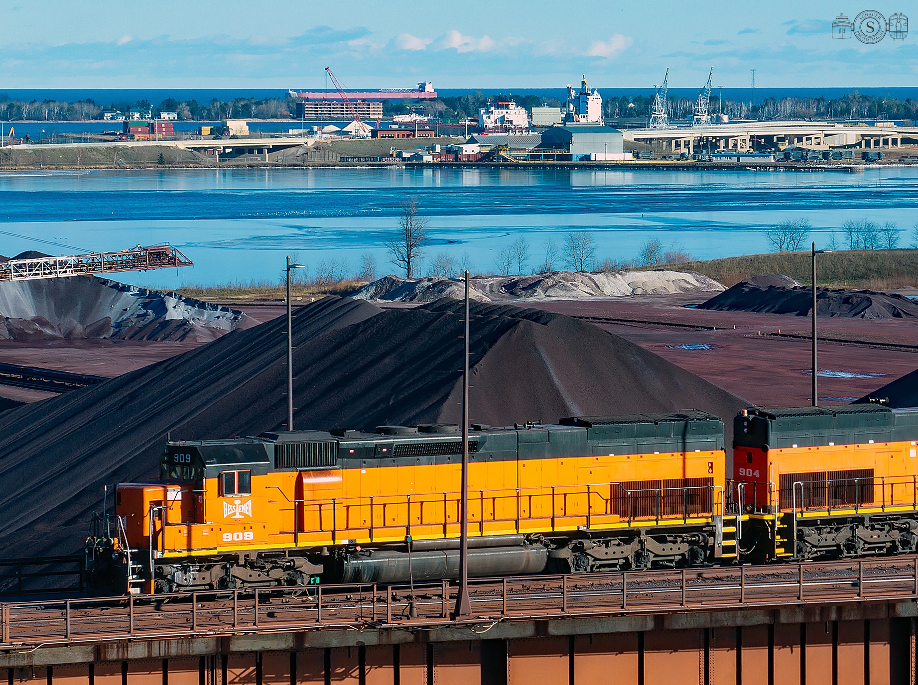 Clean B&LE 909 and 904 plus three vessels in the distance (Gott waiting on Two Harbors, James R Barker for engine repair, and Happy Rover delivering bagged quartz). Duluth, MN - November 30, 2023View attachment 835224