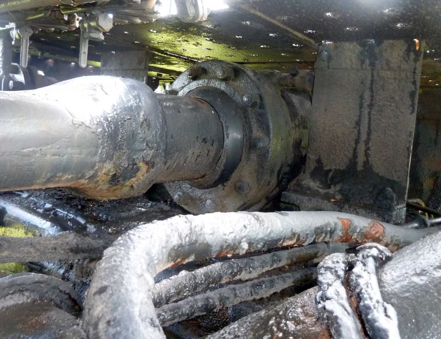 We stopped in Proctor MN to get a butt break yesterday and took photos of the steam coupler to the front drive truck. Rear drive truck seemed to be attached to the frame while the front swiveled necessitating a flexible stream coupler.
