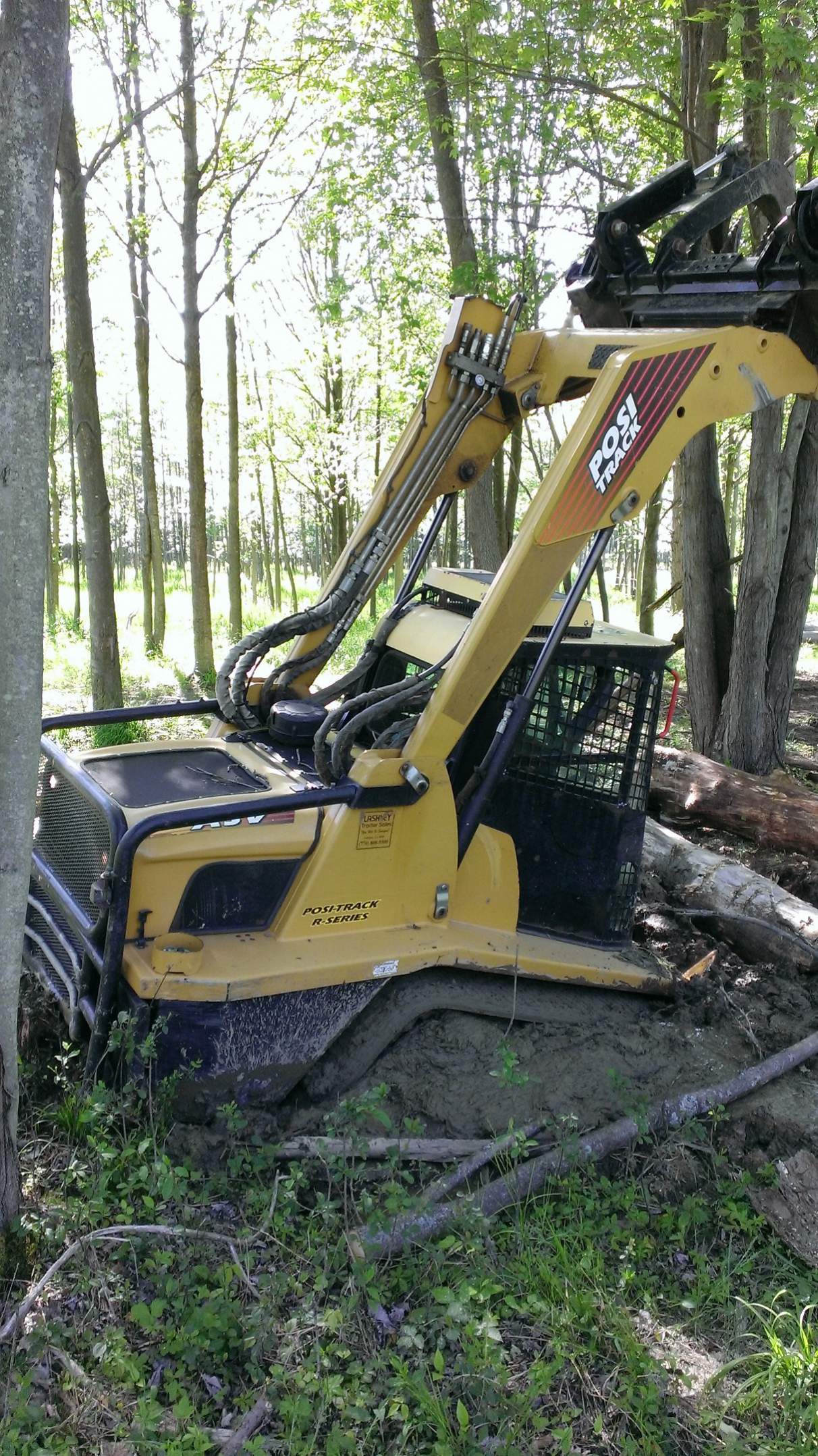 It was reasonably easy.built a road up to it from the valley below,cleared a flat pad beside it,cracked Hyd line to straighten tracks to frame,dig trench for inside track to roll into,slowly drag digger down hill slightly after Hyd lines to boom arm are cracked to lower centre of gravity,build mound of dirt to soften landing on outside track,gently stand it back up with two twenty ton diggers,call mechanic to bleed motor and check it over,fire it up and drive it back on the transporter and then back to the insurance company.one day from start to finish easy ehh!!!!How did you do that? I would have scratched it real bad.