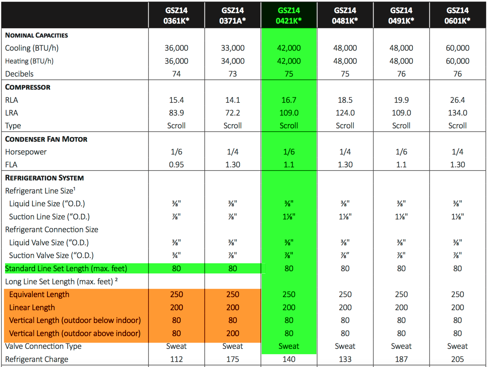 You'll notice, even for a 3.5 ton heat pump system, 65' isn't considered "long".