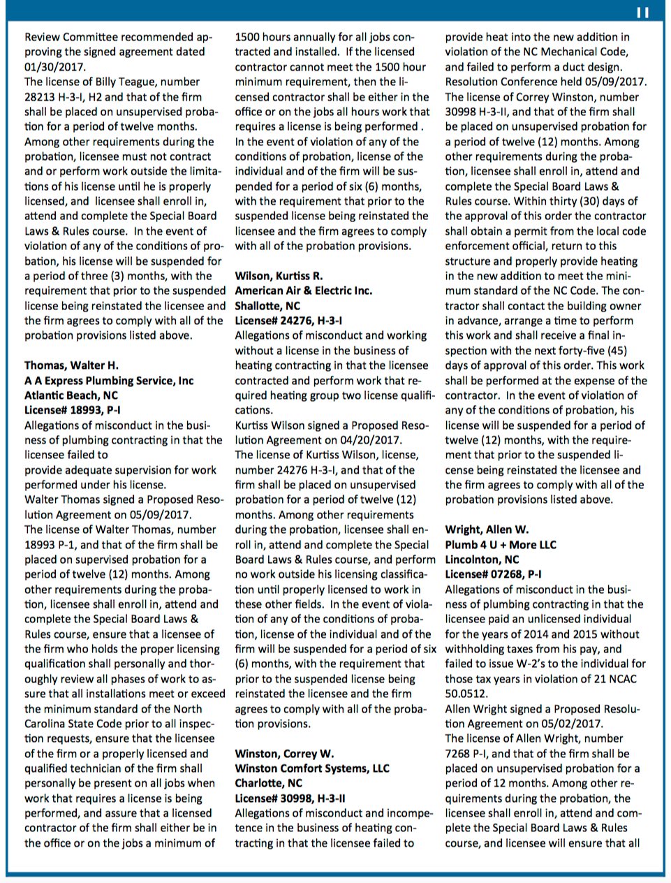 The only notices they send out here is a list of those caught without a state license. If you wan't to know how many complaints a contractor has, or how many times the board has suspended them for lack of making proper repairs, the customer / another contractor would have to call the board.