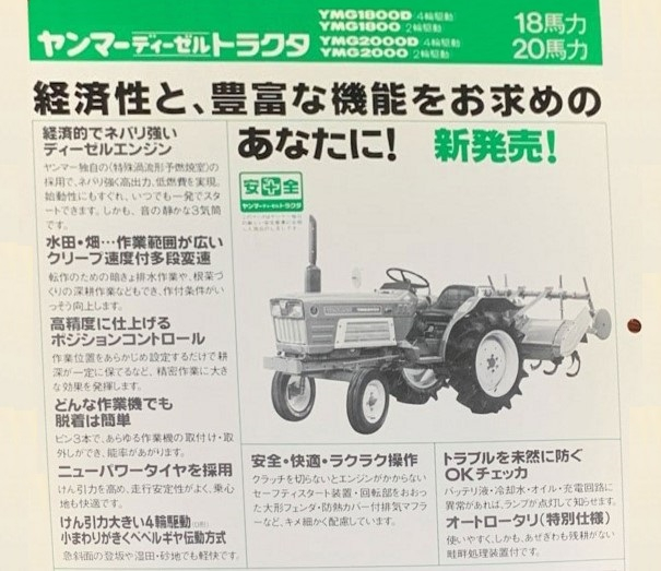 That last Yanmar has the Yanmar RS1400 rototiller, the tiller intended for YM2000. The tiller decal explicitly names YM2000 and shows how to attach it.