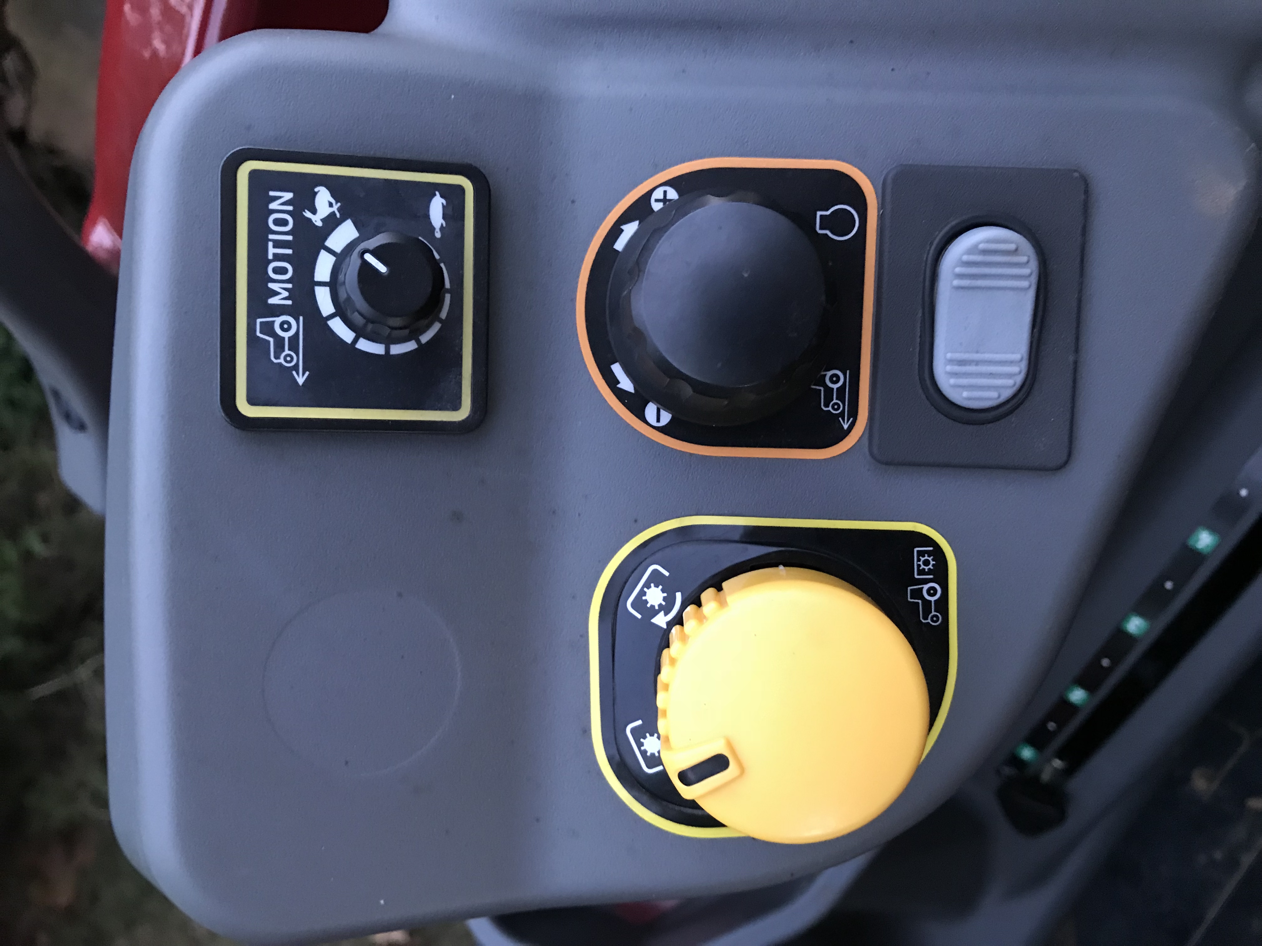 Repeatable, programmable speeds: The i-HMT transmission & advanced-operator-controls system allows you to set, remember and repeat a speed or two speeds (A/B Mode) that you need to keep returning to (or toggling between) to continuously operate at the most productive & efficient speed(s) for the work you are doing. The programmed speeds can be adjusted in 1/10th mile-per-hour increments. There is a special, standard-equipment button on the right-hand console hydraulic control lever (joystick) that allows you to toggle between the two pre-set speeds.