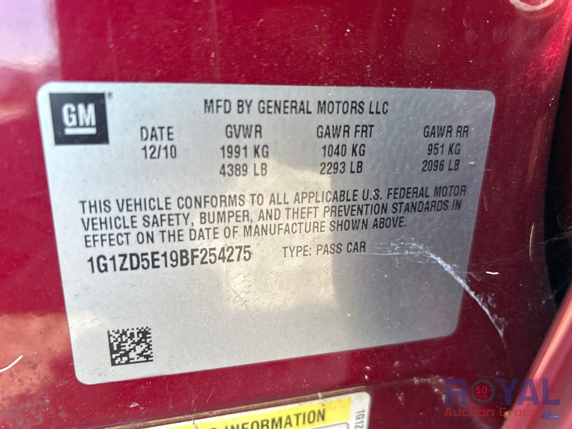 Year: 2011 Make: Chevrolet Model: Malibu Vehicle Type: Passenger Car Mileage: Plate: Body Type: 4 Door Sedan Trim Level: 2LT Drive Line: FWD Engine Type: L4, 2.4L; DOHC 16V Fuel Type: Gasoline Horsepower: Transmission: VIN #: 1G1ZD5E19BF254275 Features and Notes: