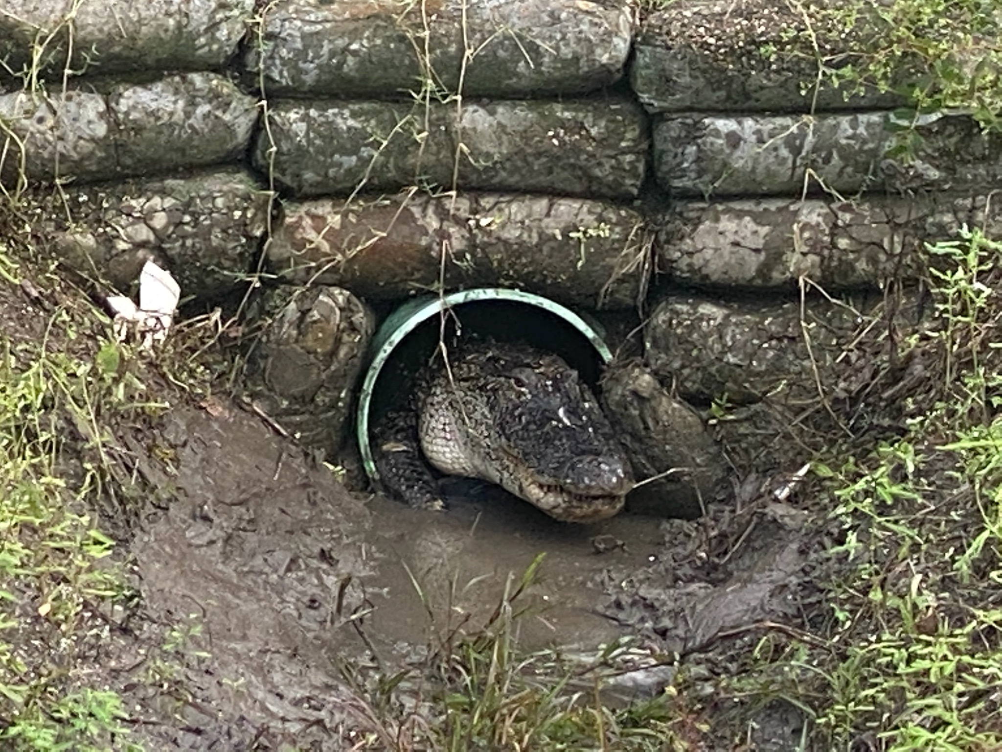 I will bring back this old thread with photos of the visitor we had yesterday when I went out to get the mail at our box on the River Road. He was 8 feet long but too cranky. He did bite a piece of 3/4" emt and smash it. We managed to lasso his nose and dragged him up the levee and turned him loose by the Mississippi River which is where I am sure he came from. One of my neighbors down the road had a 6' one in his fish pond last week. They are everywhere here but they are not as bad as the Florida alligators because they are so well fed here. Louisiana has more alligators than the other 49 states put together.