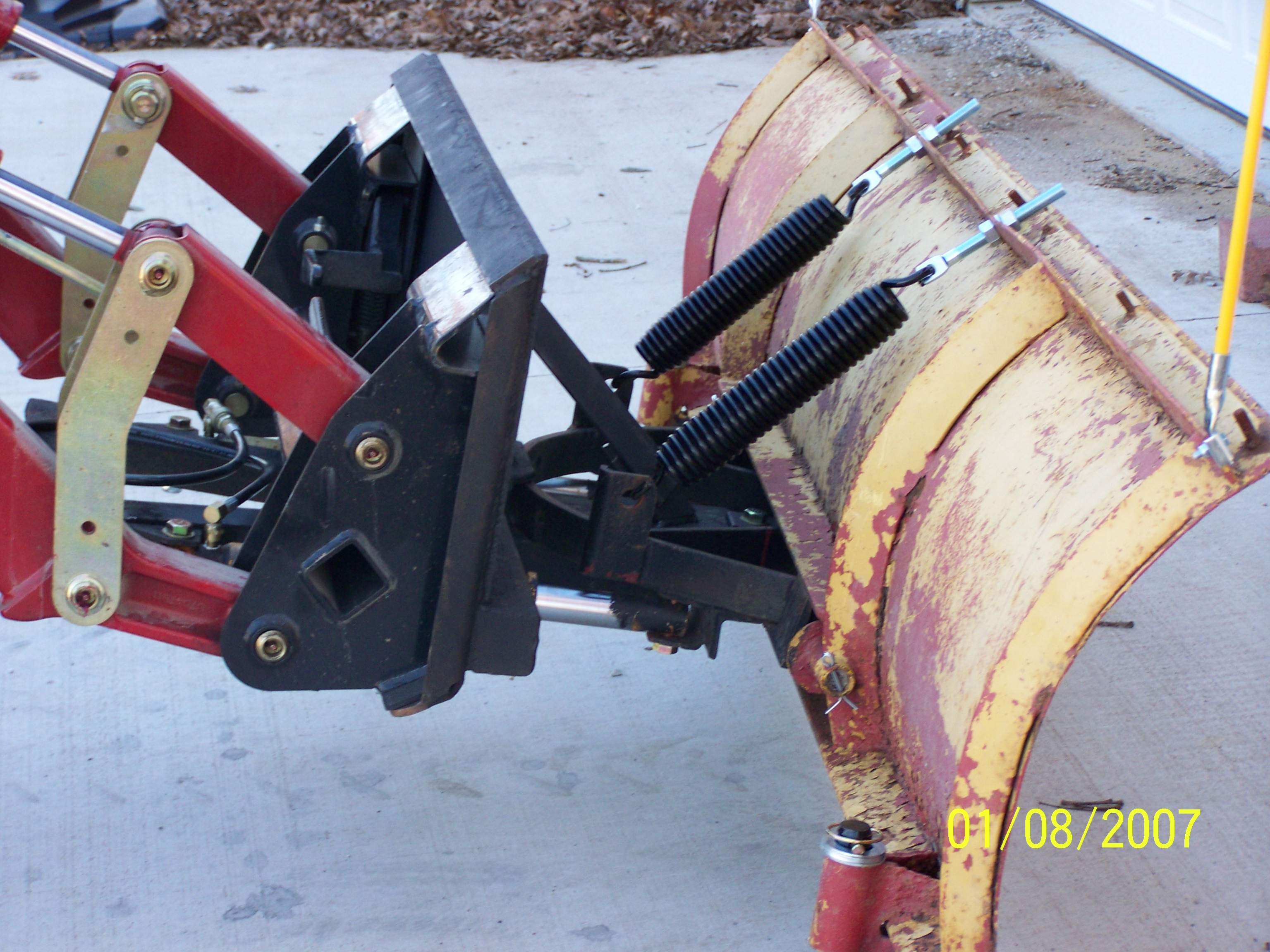Cool! Glad I could inspire somone! Your going to really enjoy your plow and wonder how you could get by with out it. I just got back from plowing and it's cuts the plowing time down by 70%. As one member mentioned. You'll have to get used to taking some weight off the fel so you can get your steering control while taking a turn but the same has to be done with much larger equipment that I've operated in the past. Enjoy. You did a nice job on your set up.