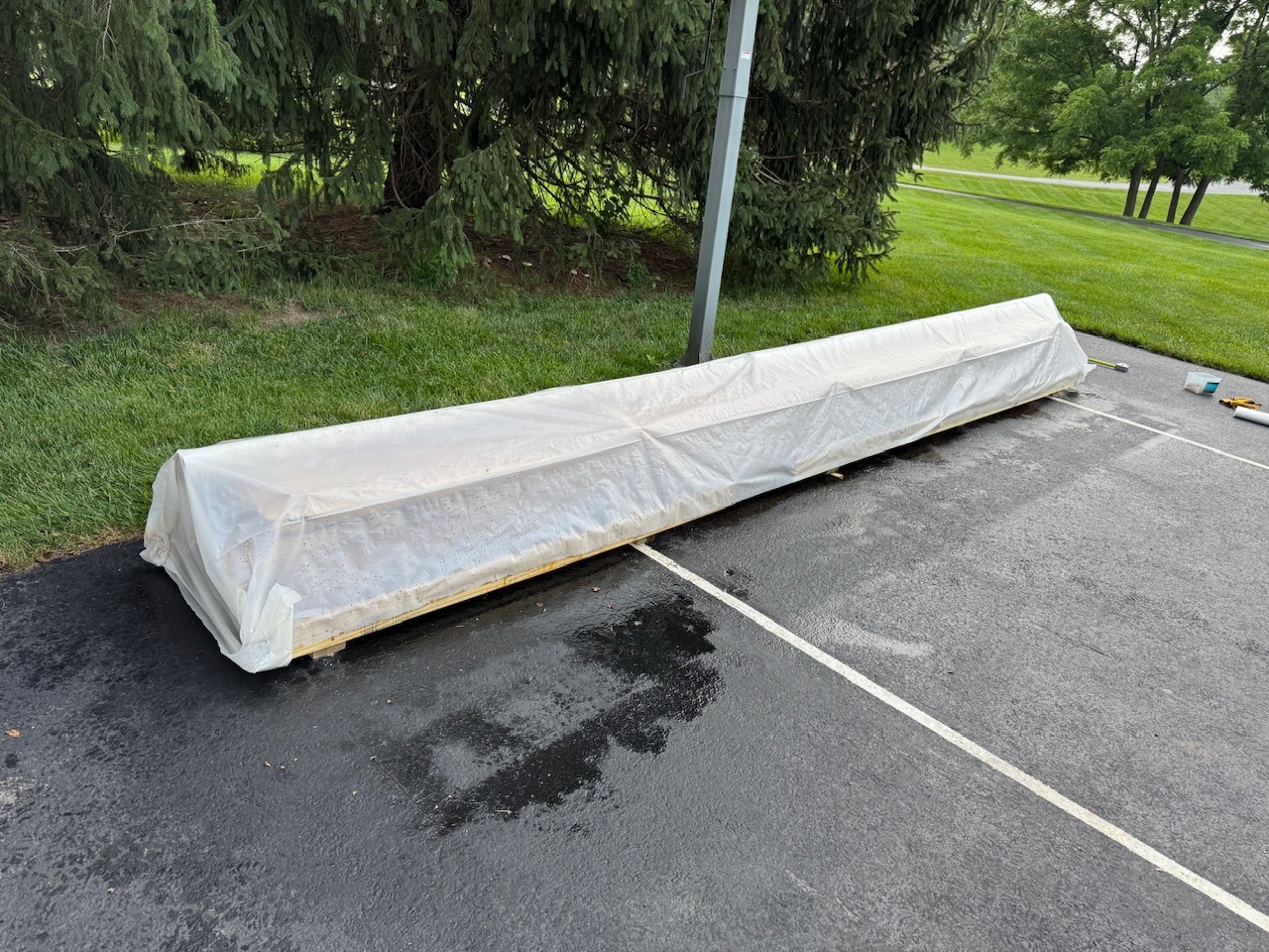 I’ll have to lift the plastic at the ends after the next rain passes, to seal the board ends with paint or wax. Today was all a rush to get them treated and covered before tonight’s rain.