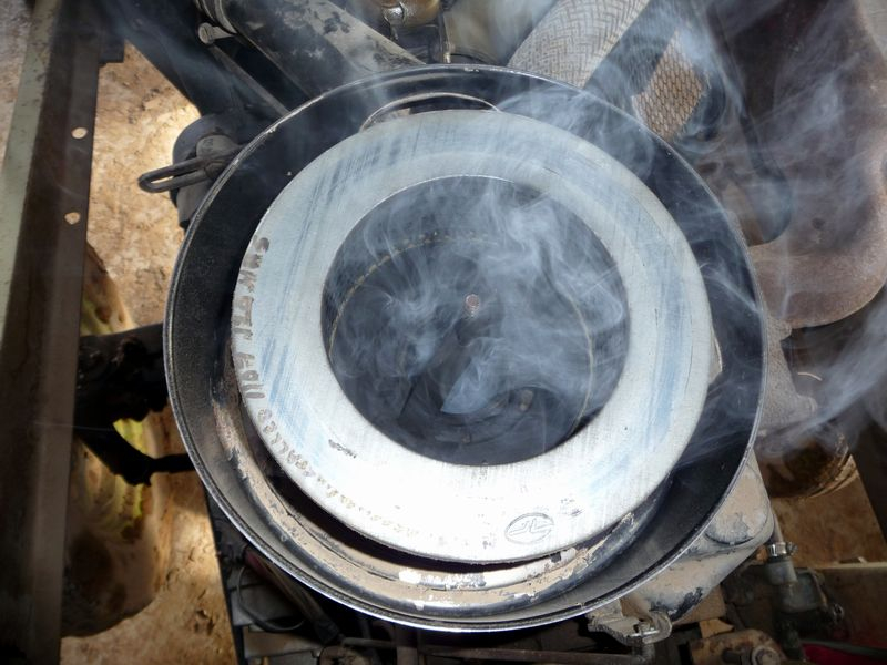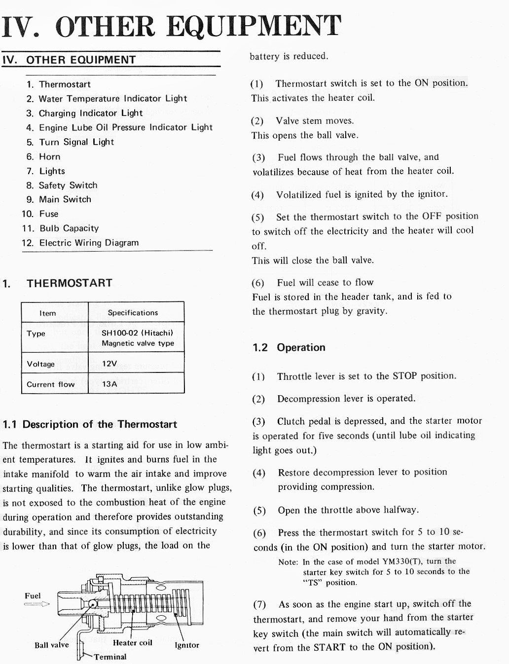 This tractor is my first diesel. Yesterday when I started it the temp was 40 degrees, or maybe a few degrees cooler. So not too cold. Following the instructions in the manual I turned on the thermostart for 10 seconds. Well, at least the thermostart light was on. With the throttle set for about 2000 RPM I pulled out the compression release knob, cranked the engine and let go of the knob. It almost started. So I tried again without the thermostart. It started but died as soon as I stopped cranking. So I tried a third time. I just cranked the engine until it started, about 7 seconds, which seemed like a really long time. White and black smoke, then just copious amounts of black smoke came out of the stack but it was running. I throttled down to 1500 RPM and it sounded fine and did not smoke. The smoke really only lasted two or three seconds, I could tell it was just unburned and partially burned fuel. Once started and with the RPM set to 1500 it sounded normal and didn't smoke. Tomorrow I will test the thermostart to make sure it is working. But did I do anything wrong trying to start the thing? At 50 degrees it starts right up without the thermostart. I was wondering if actuating the thermostart just dumped diesel without igniting it, and that's why I saw white smoke and then lots of black smoke. Because the engine was flooded. Anyway, tomorrow I'll check the thermostart and then I can know a little bit more.