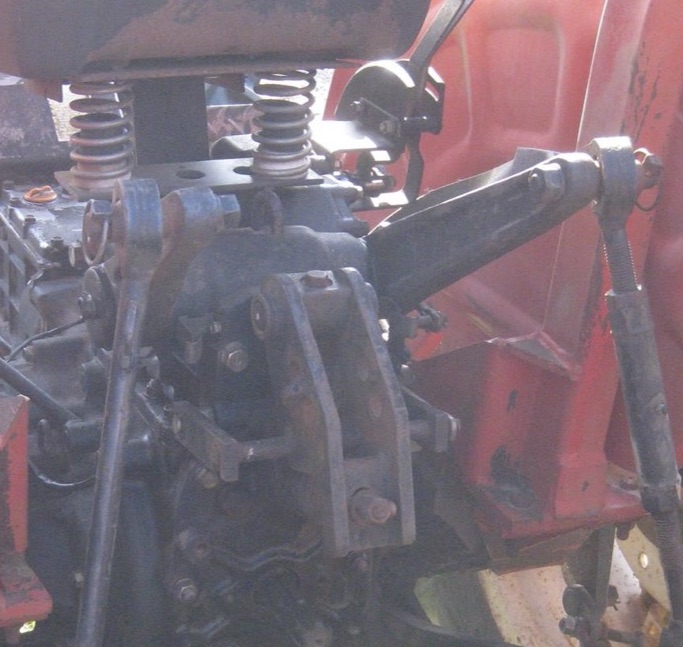 Just as Winston says...That pivoted top link mount is the sensing mechanism for automatic draft control. Draft control automatically raises a 3pt implement if it runs into an obstruction to forward motion.....like if a plow if it hits an obstruction underground. Auto Draft control is an optional accessory on most farm tractors of that size and up. It's the automatic version of manual draft control - which is just the operator with one hand on the 3pt lift mechanism and constantly adjusting the plow or blade depending on the toughness of the substate and whether there are any rocks.