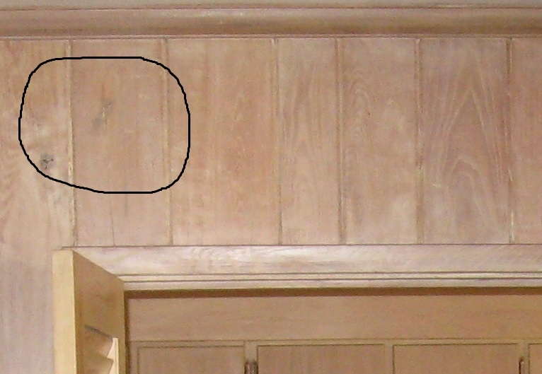 There was a knot shaped like a rabbit (if you use your imagination) in the wood paneling over the door between the living room and the kitchen in the house I grew up in. I remember my Dad carrying me on his shoulders going in to dinner so I could pet the rabbit on the way in (60 years ago).