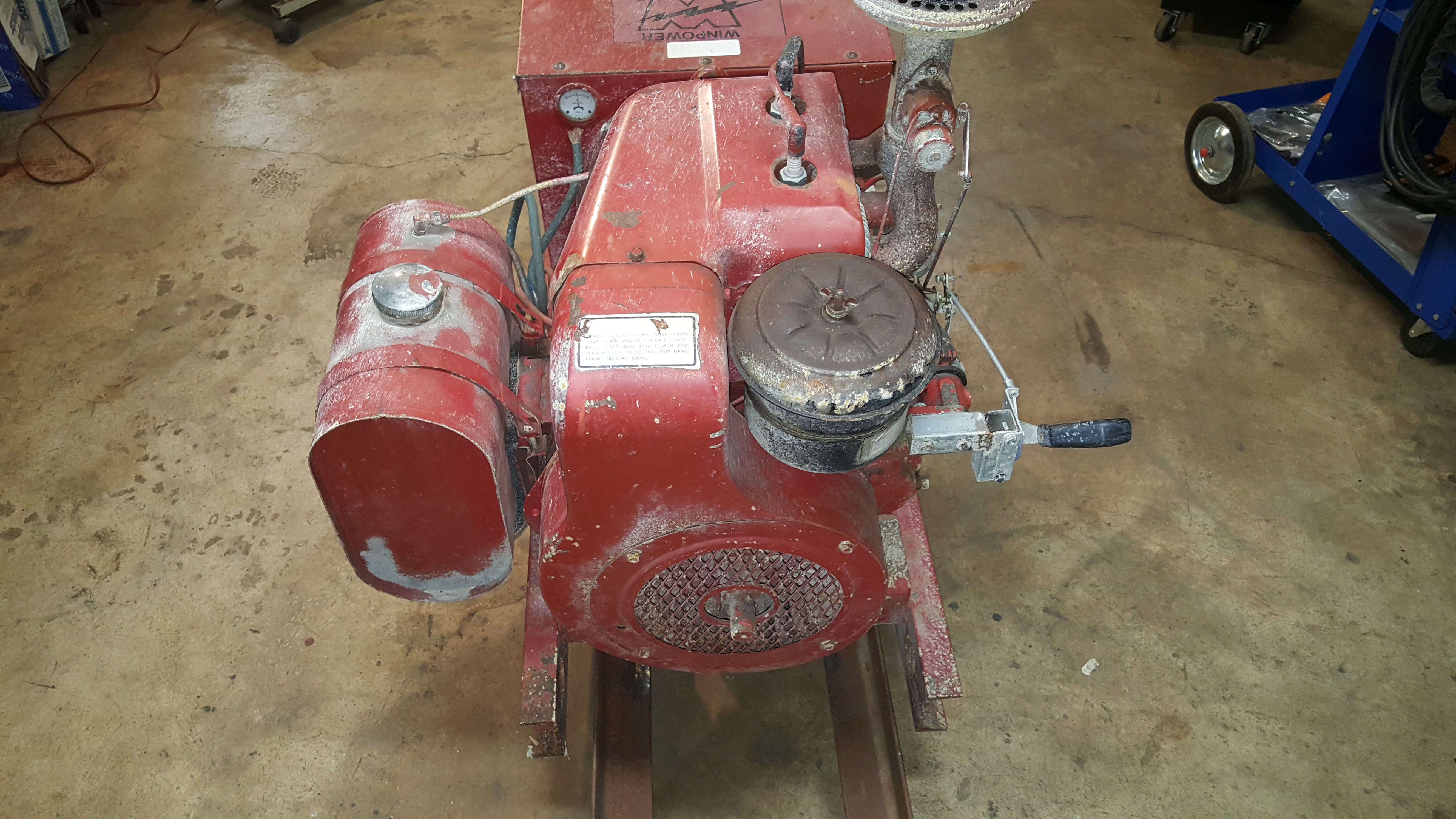This thing is HEAVY, I estimate somewhere around 600# due to the heavy casting of that indestructable JTD engine, so I built a 4-castor dolly to set it on (the one in pic is borrowed one).