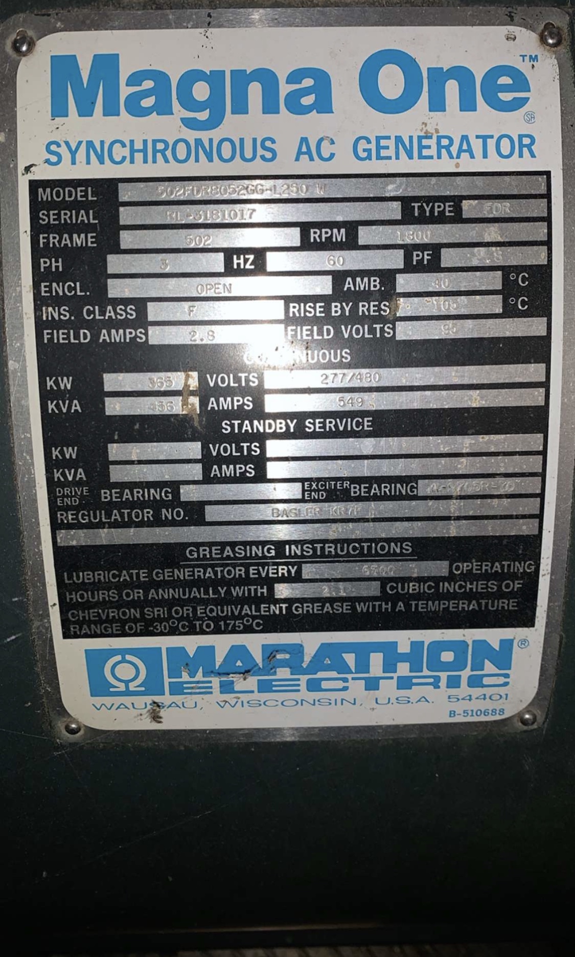 / Your last generator Maintenance Run #3,430