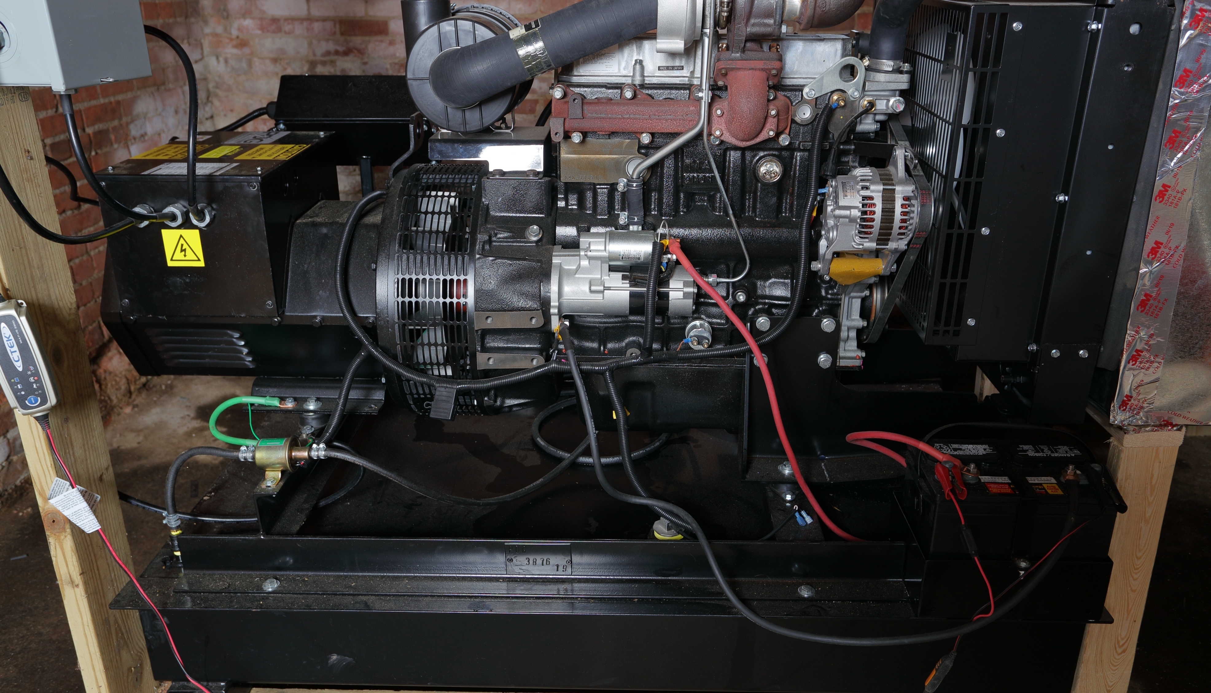 I use the generator's 80 gallon storage tank as a transfer tank to feed my Deere and Kubota. I keep the diesel treated with algaecide and it gets a dose of power service for winter however the part of the barn it is in rarely gets much below freezing since over half of that level is in the ground. The generator came with a block heater and I put on a small thermostatically controlled oil pan heater and both of those are on an external thermostat that applies power when the temperature makes it down to freezing. That circuit has a generator powered relay controlling it so when the generator starts, the block heater and oil pan heater have their power feed opened. The starting battery is on a dedicated Ctek battery maintainer.