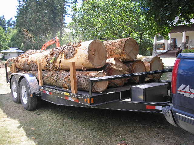 5 fir and 1 pine 24' long I soon found out I was slightly over loaded. Load of logs 004.jpgLoad of logs 001.jpg