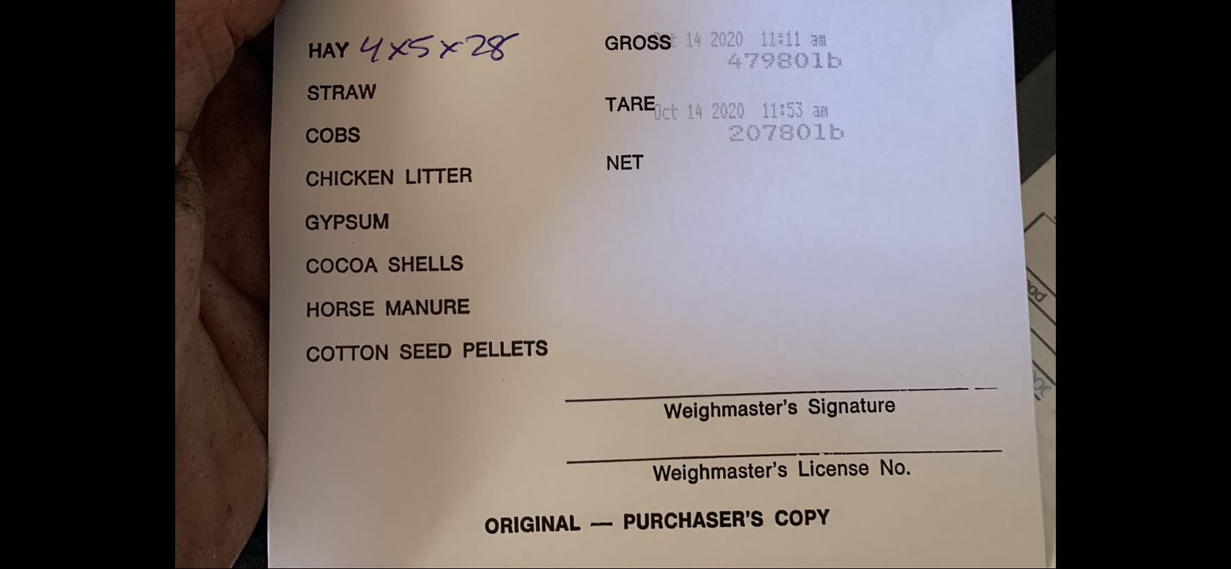 Actually had 28 bales, but 6 were already unloaded. See scale ticket picture.