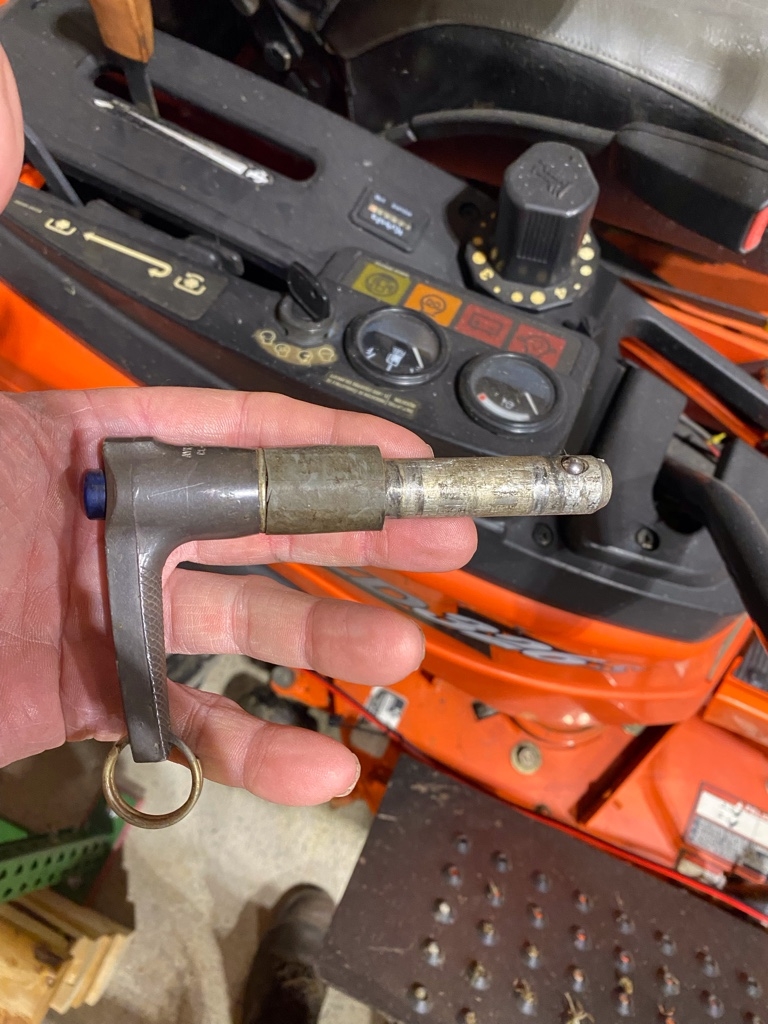 Do you have pictures of the quick release pins you speak of?Mine are also down almost all of the time. I replaced the OEM pins with quick release pins so that when I'm mowing on a slope it's more convenient to raise and pin the rops.