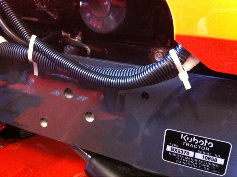 Fist of all, I try not to mix business with pleasure and tractoring is really just a hobby for me (landscaping/maintenance on my property). And I am very recent to being a proud Kubota owner but I should add that I do not rely on my ride (as many on TBN do) for a living. Cable ties have their place as many have suggested but they are not meant for securing everything... hose clamps, spiral wrap, P clamps, and more, all have their ideal functions too of course. Funny thing here... I didn't even practice what I would preach with cable ties as I recently removed all of the factory white ties with orange ties just because they look cool and my BX seemed to be calling for them :laughing: FYI... typically orange color ties are used in aviation only as temporary ties securing flight test or other wiring meant to be removed before putting in service as they don't possess properties (just as the white ones don't) for long term use depending on operating conditions.